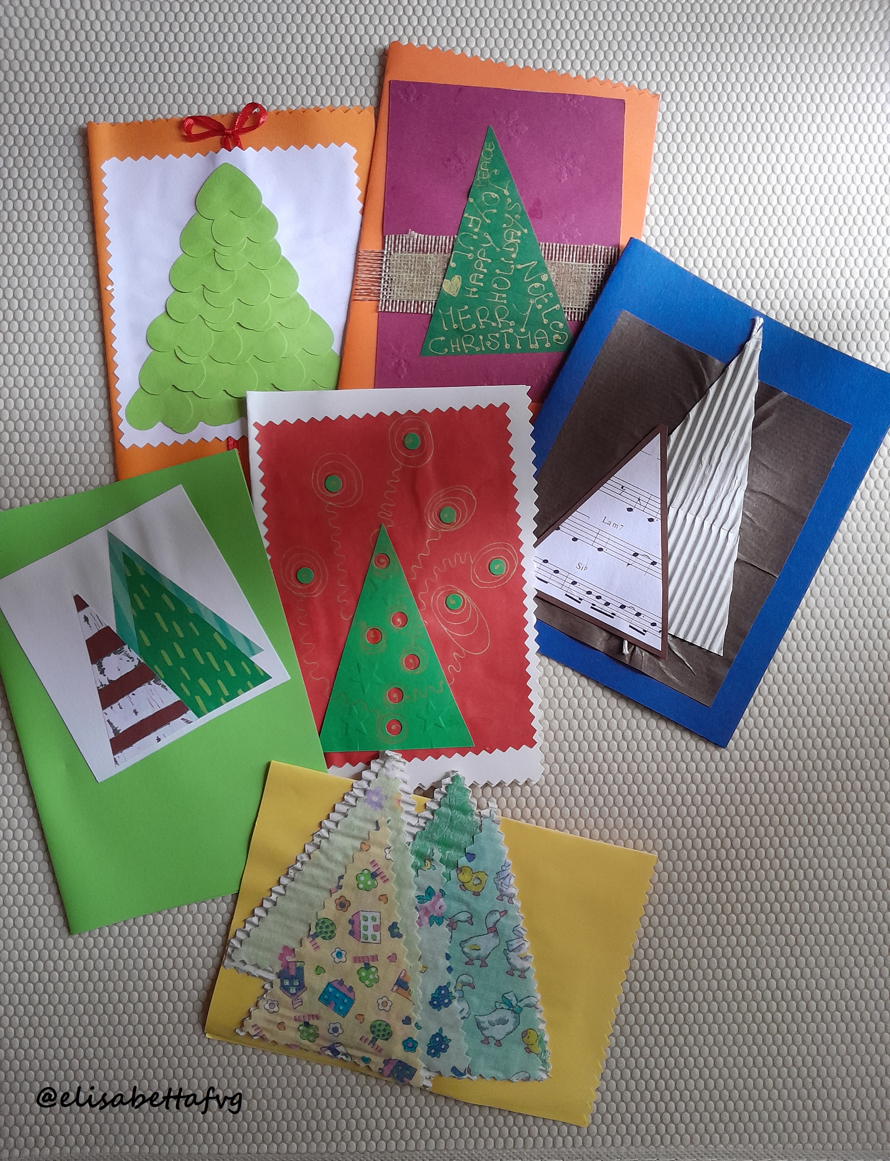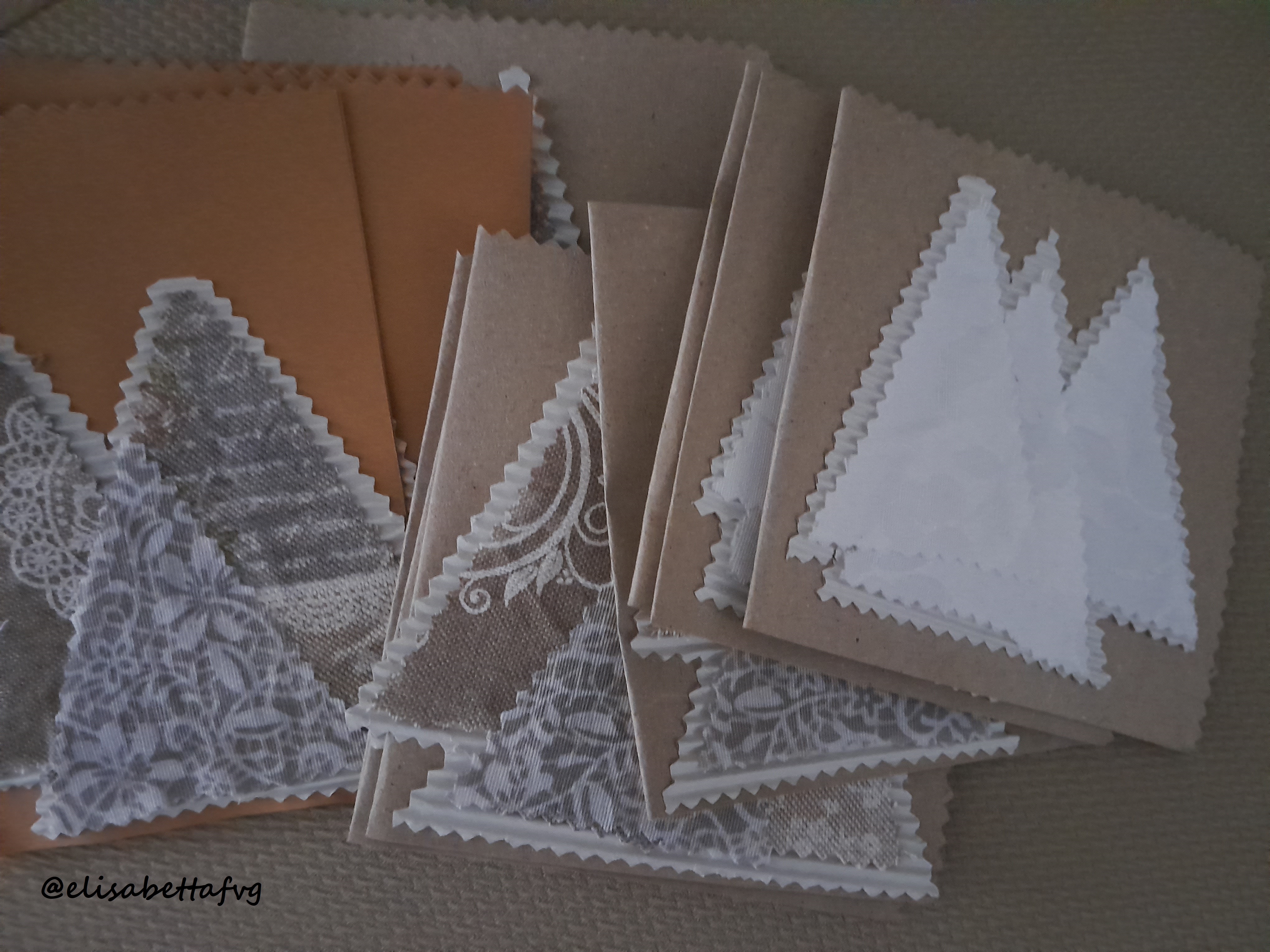 … pezzetti di tessuto trasformati, con le forbicione a zig zag, in innevati boschi di abeti 🌲🌲🌲…